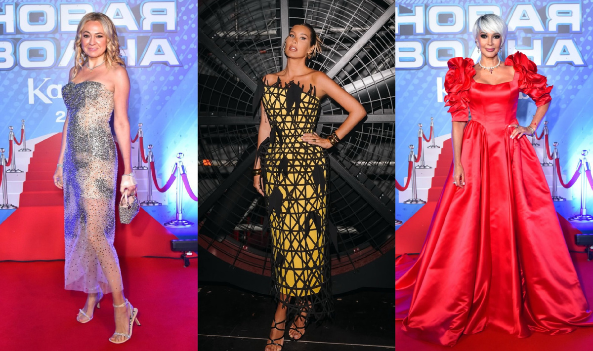 В Казани прошло торжественное закрытие «Новой волны 2025». И сегодня предлагаю рассмотреть яркие образы, иногда очень даже спорные, с красной дорожки финального вечера. Лера Кудрявцева Лера появилась в ярко-алом пышном платье принцессы и… в белом парике. Если к платьям-«принцессам» мы давно привыкли — меняется только цвет, — то к парик-эксперименту вопросов больше. Белый парик добавил ей возраст, превратив в женщину 60+. Яна Рудковская Яна Рудковская снова выбрала любимый фасон — платье-бандо в пайетку с лёгкой прозрачностью. Красиво, эффектно, но абсолютно ожидаемо. Более того, этот образ мы уже видели на ней не раз. Похоже, Яна действительно практикует осознанное потребление вечерних нарядов от мировых брендов. Анна Семёнович Анна Семенович пришла в массивном плаще и бандане. Смотрелась запоминающе, но в контексте красной дорожки — будто рокеры собрались в лес за грибами. Кэти Топурия Главная звезда вечера! Певица выбрала ярко-жёлтое платье с чёрной аппликацией в духе Schiaparel