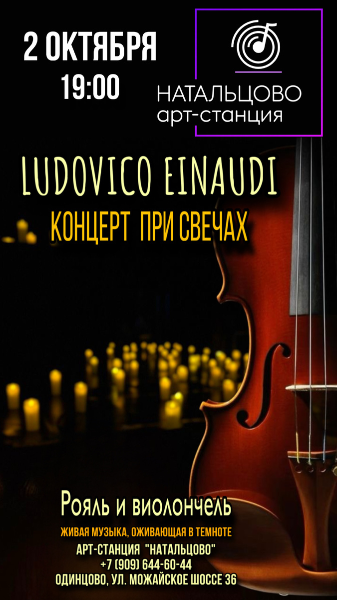 Рояль и виолончель. Живая музыка, оживающая в темноте... Погрузитесь в мир глубокой тишины и света, где каждый аккорд звучит как дыхание. В этот вечер, при свете сотен свечей, прозвучит музыка Людовико Эйнауди - композитора, чьи мелодии трогают сердце без слов. рояль и виолончель сплетутся в тонкий диалог - от хрупкой "Nuvole Bianche" до кинематографичной "Experience" и гипнотической "Una Mattina". Это будет не просто концерт - это будет ощущение времени, которое замирает. 2 ОКТЯБРЯ В 19.00 - живое исполнение при свете свечей. Билеты можно приобрести по ссылке: https://quicktickets.ru/odincovo-as-natalcovo/s49 г. Одинцово, Можайское шоссе, д.36, подъезд 2 МУЗЫКА ЭЙНАУДИ - ЭТО СВЕТ ВНУТРИ... ПОДАРИТЕ СЕБЕ ВЕЧЕР НАСТОЯЩЕЙ КРАСОТЫ!