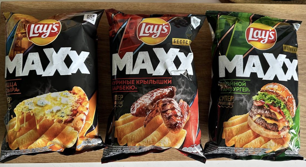 В продаже появились рифленые чипсы Lay’s Maxx в упаковках по 110 г. Линейка представлена сразу несколькими вкусами — «Пицца 4 сыра», «Крылышки барбекю» и «Двойной гамбургер».