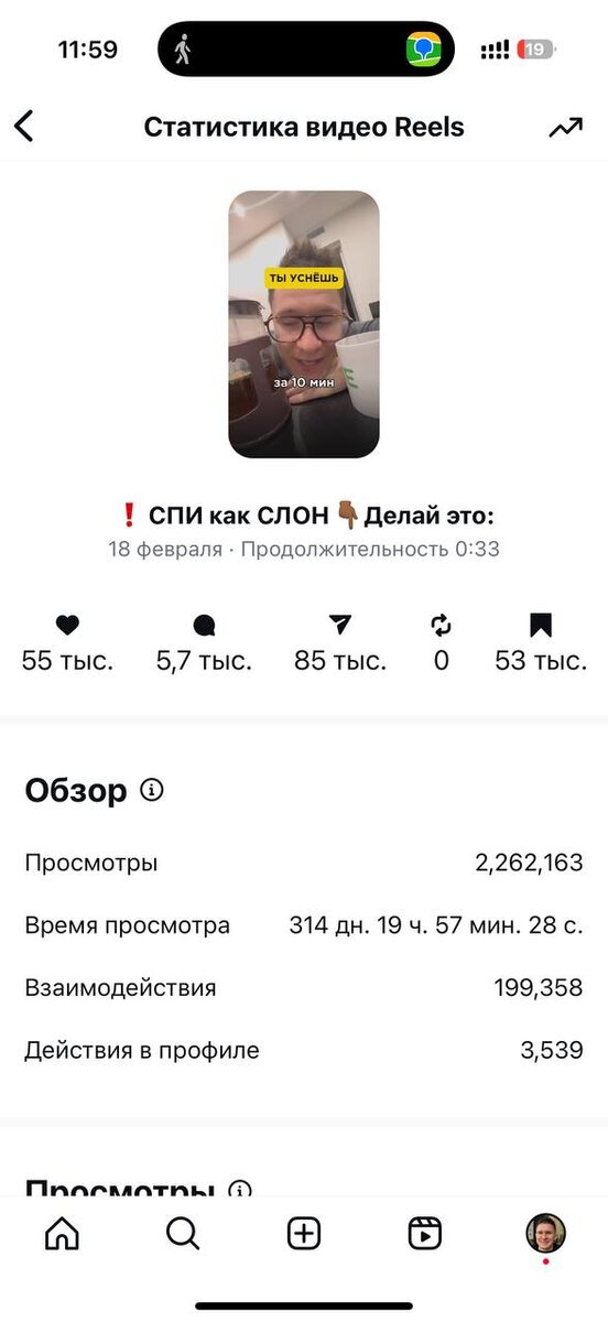 Один из моих Reels, который, как и все снят тупо на фронталку, из монтажа только текст и обрезка.