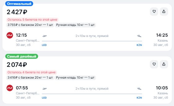 ✈️Санкт-Петербург - Казань от 2100 рублей