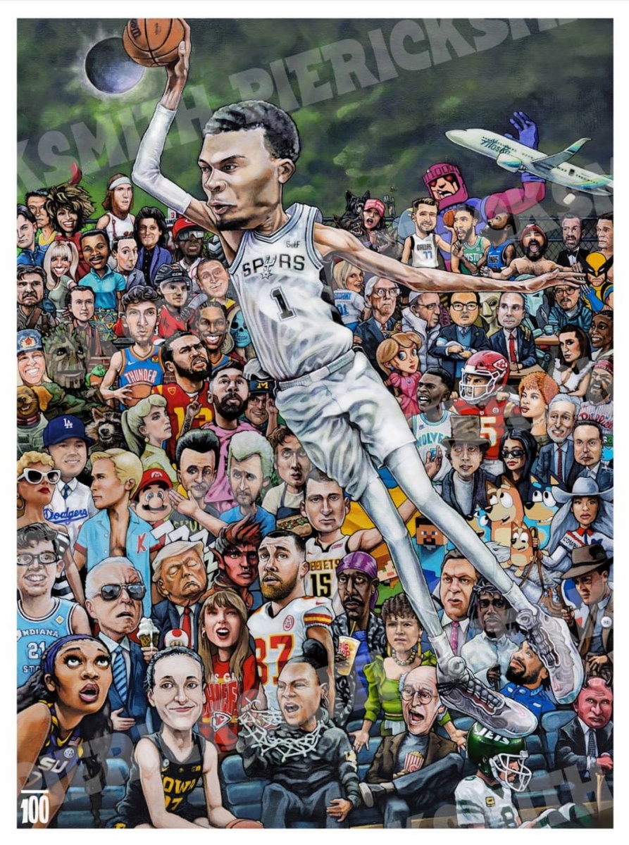 Данки как часть массовой культуры — так можно описать работы Ричарда Пьерика Смита, художника из Висконсина. Он изображает известных баскетболистов во время броска сверху, а на трибунах десятки представителей поп-культуры разных эпох. Джерси любого из игроков, кроссовки и мяч разыграем сегодня вечером. Ещё успееееееееееете залететь @bbollerroom