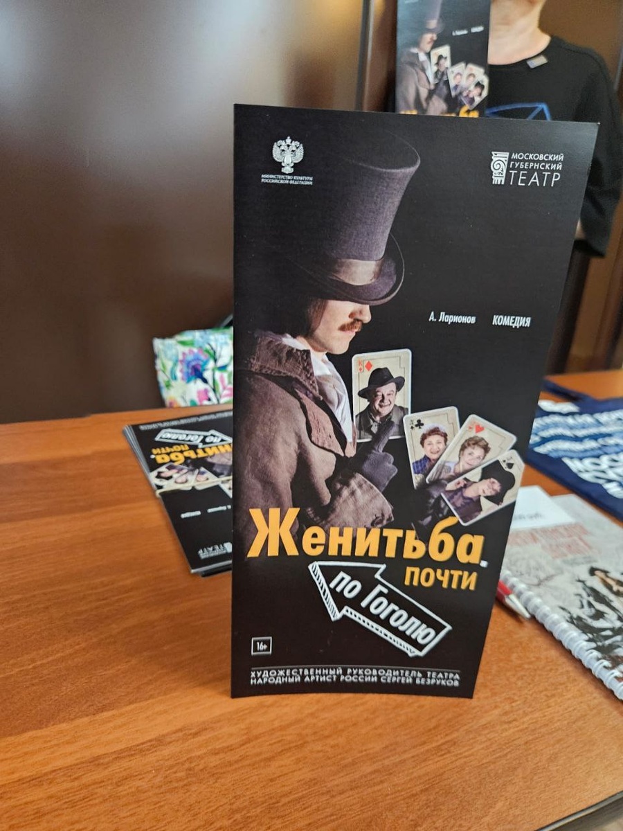 "Женитьба.Почти по Гоголю" Московский Губернский театр Реж. С.Безруков ⏰2 часа 50 минут с антрактом Что сказать! Ну, неплохой спектакль! В первую очередь впечатлили декорации, осенние листья на сцене, костюмы продуманы и всё в тему (даже щетки на коленях у главного героя). Костюмы очень грамотно подобраны. Нет ширпотреба, а вот именно, что хорошие костюмы, пошиты для каждой сцены свои. Про сюжет: В отличие от оригинального сюжета Гоголя, где несколько женихов стремятся к одной невесте, в постановке Безрукова ситуация перевернута. Здесь за внимание и руку зрелого Ивана Кузьмича Колесина, которого внук уговаривает жениться, соперничают три потенциальные невесты, связанные общим прошлым – школьной скамьей. Каждая из них обладает уникальными достоинствами: Инна Павловна Яичница, повар из заводской столовой, обещает сытную пищу и диетическое питание. Элеонора Бальтазаровна Жевакина, врач из местной поликлиники, предлагает заботу о здоровье. Анна Тихоновна Купердягина, отличающаяся доброто