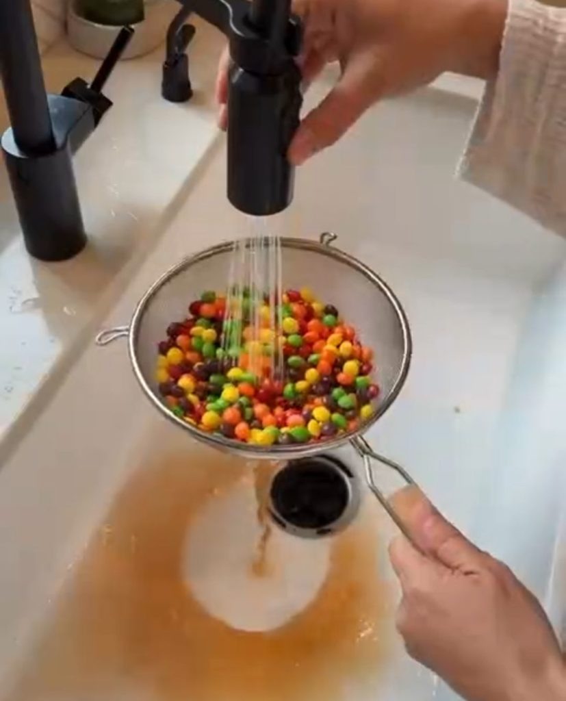 В социальных сетях набирает обороты новый, неоднозначный тренд, получивший ироничное название «опыт бежевых мам». Его суть проста до абсурда: разноцветные конфеты Skittles аккуратно моют под проточной водой, а затем выкладывают на салфетку для просушки.