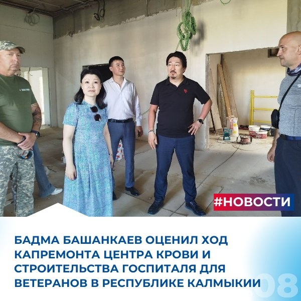 Координатор направления «Здоровье человека» Народной программы «Единой России», первый заместитель руководителя Комитета по охране здоровья ГД ФС РФ Бадма Башанкаев совместно с региональным координатором партпроекта «Старшее поколение», заместителем председателя Правительства Республики Калмыкии Мариной Ользятиевой посетили объекты здравоохранения, находящиеся в процессе капитального ремонта и строительства, в частности, госпиталь ветеранов воин и центр крови