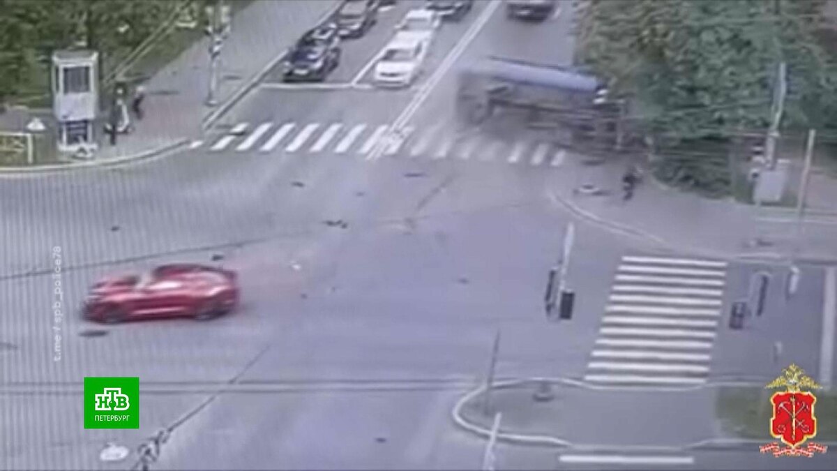 [ Смотреть видео на сайте НТВ ] Спорткар Chevrolet нырнул под грузовик на площади Академика Климова. От удара фургон влетел в пешеходов. Сегодня около 10:30 на пересечении Кантемировской улицы и Большого Сампсониевского проспекта иномарка врезалась в грузовик. Фургон перевернулся и сбил курьера на электровелосипеде. При падении 23-летний доставщик серьезно повредил спину. Его госпитализировали в состоянии средней степени тяжести. Очевидцы утверждают, что фургон заканчивал проезд перекрестка на желтый сигнал светофора, Chevrolet двигался на красный. [ Смотреть видео на сайте НТВ ]