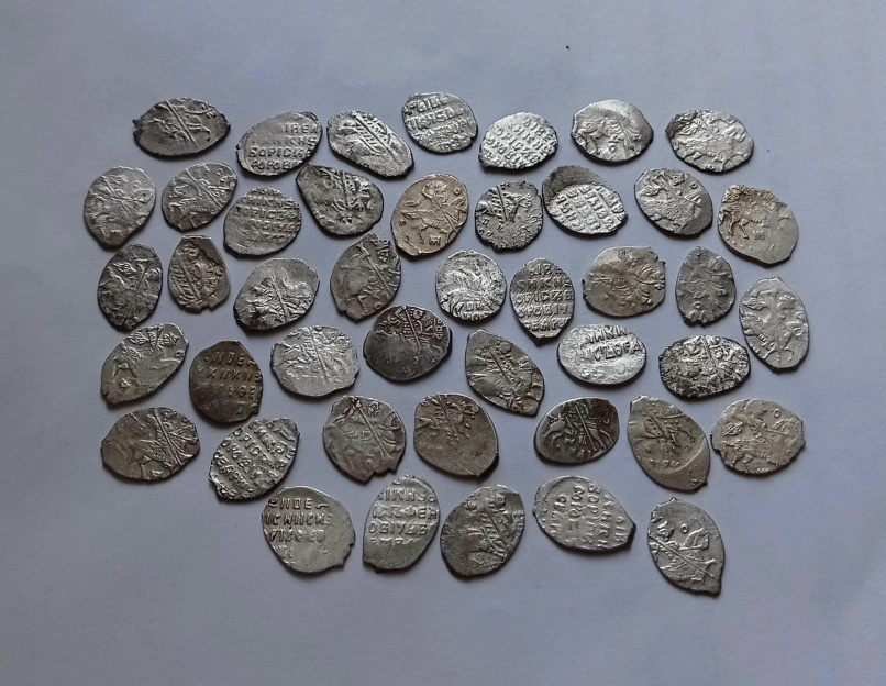 До петровских реформ монетная система России была развита слабо. В обращении находилось всего три номинала, крупнейшим из которых была копейка. Их делали из кусочков серебряной проволоки, и размеры их не превышали тыквенное семечко. Из-за сходства с рыбьей чешуей, они получили название "чешуйки".