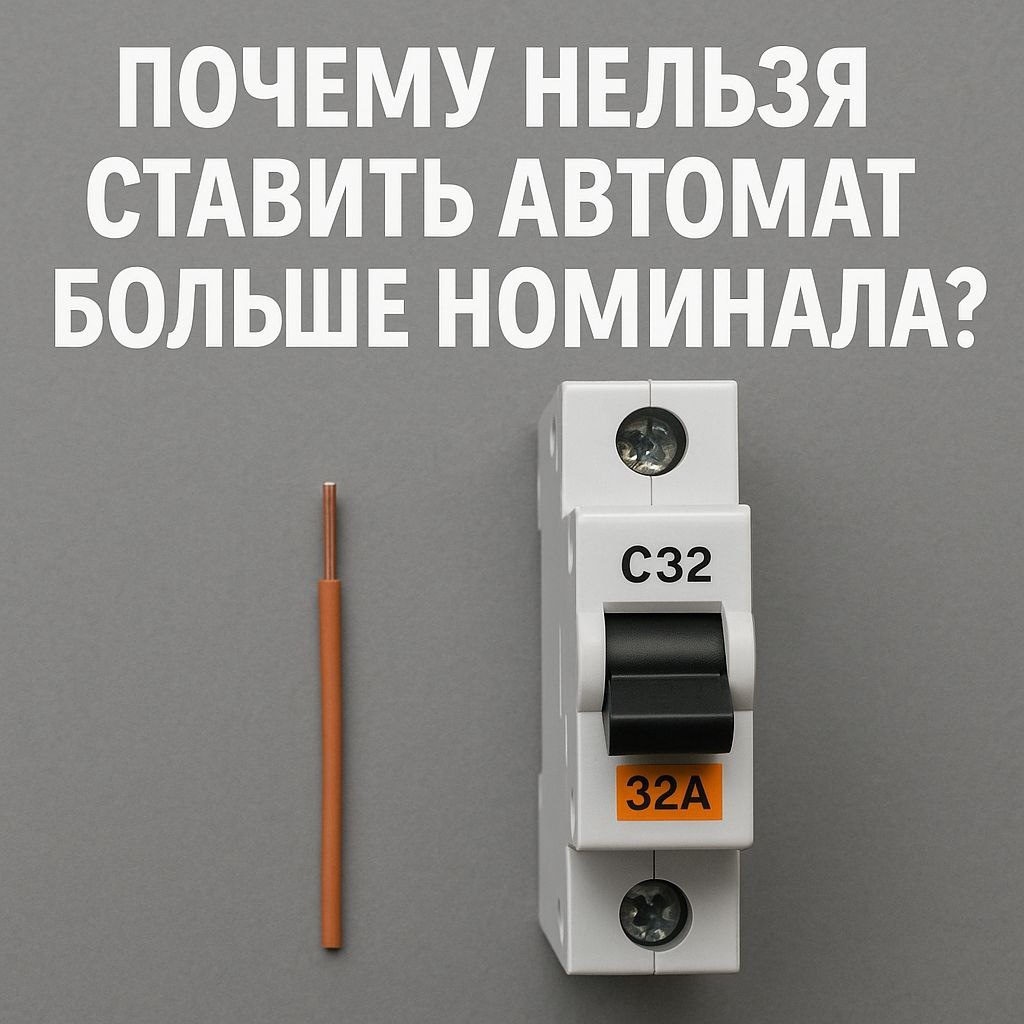 Автомат защищает не приборы, а проводку! Частая ошибка — ставить автомат «помощнее», чтобы не выбивало. Но это опасно. ⚠️ Что происходит: Кабель рассчитан, например, на 16 А. Ставим автомат на 32 А. Провод начинает греться, изоляция плавится, может возникнуть пожар. 🔧 Правило: Автомат всегда подбирается по сечению кабеля, а не по мощности приборов. ✅ Итог: лучше выбьет автомат, чем загорится проводка.