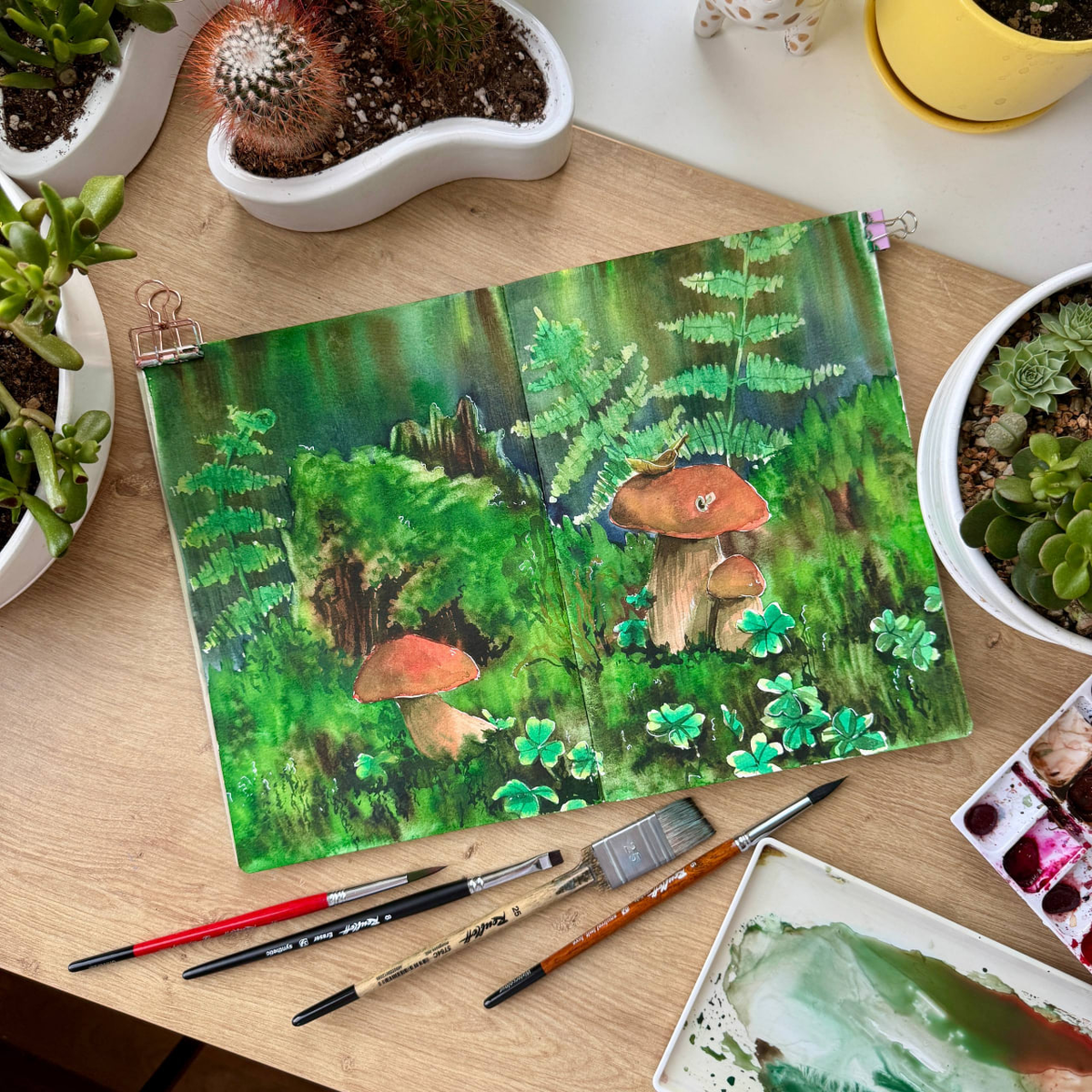 🍄🟫Встречайте новый урок в творческом клубе Dari Art - сегодня приглашаем вас порисовать акварелью! Приготовили для вас очень интересный сюжет - лес, зеленый мох и грибы, которые так увлекательно искать 👀 Урок уже доступен участникам клуба! А если вы еще не вступили в наше творческое сообщество - присоединяйтесь в любое удобное время 💫