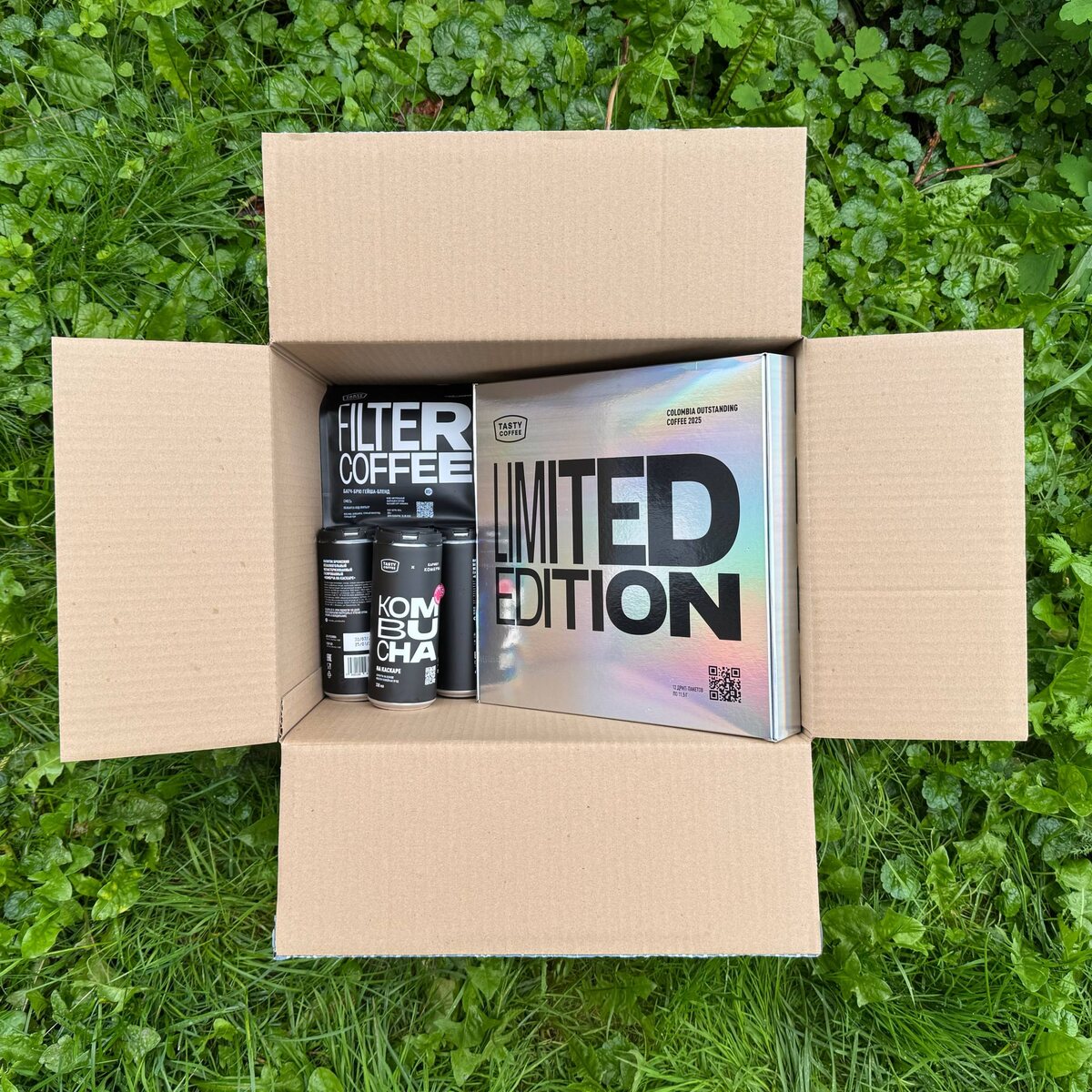 🗒 Приехал Tasty Coffee В этот раз приехали очень интересные лоты. Во-первых это набор редкого кофе из Колумбии с оценкой около 90 баллов. Внутри 12 дрипов. Называется Limited Edition Colombia Outstanding Coffee 2025. Во-вторых приехал Батч-Брю Гейша-бленд! • Мне очень нравится название, потому что слово "бленд" я раньше ассоциировал с недорогими смесями арабики и робусты, которые до сих пор встречаются в незатейливых кофейнях. А тут бленд редких разновидностей с высокой оценкой вкуса. • Ещё мне нравится, что пишут про него на сайте обжарщика. Эти сорта не дотянули до Limited серии, поэтому их отдают ниже себестоимости. Звучит как отличная сделка! Ну и в-третьих приехала комбуча. Я такое ещё не пробовал. Тоже любопытно. @Кофезавр