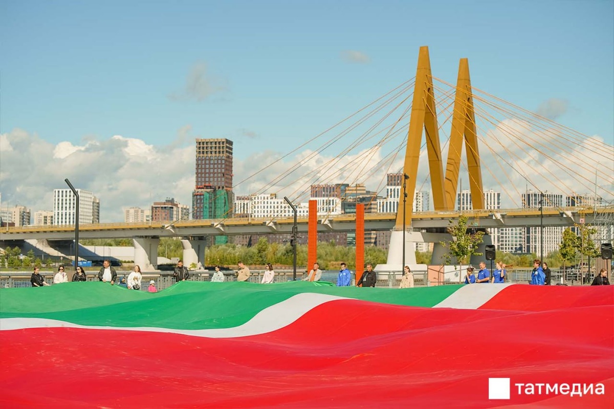 🇷🇺😍В Казани развернули огромный флаг Татарстана ко Дню Республики