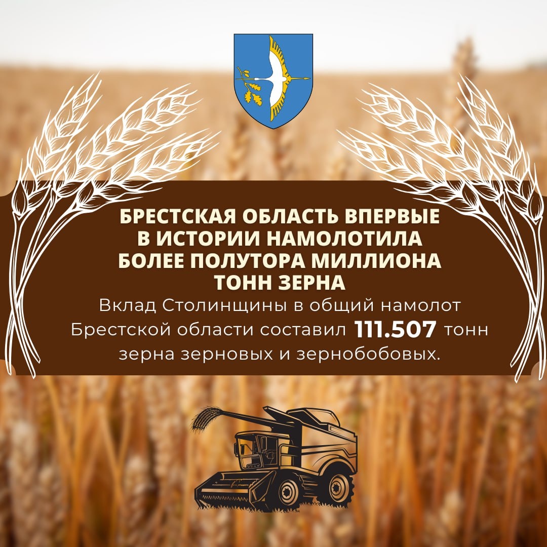🌿 Брестская область впервые в истории намолотила более полутора миллиона тонн зерна