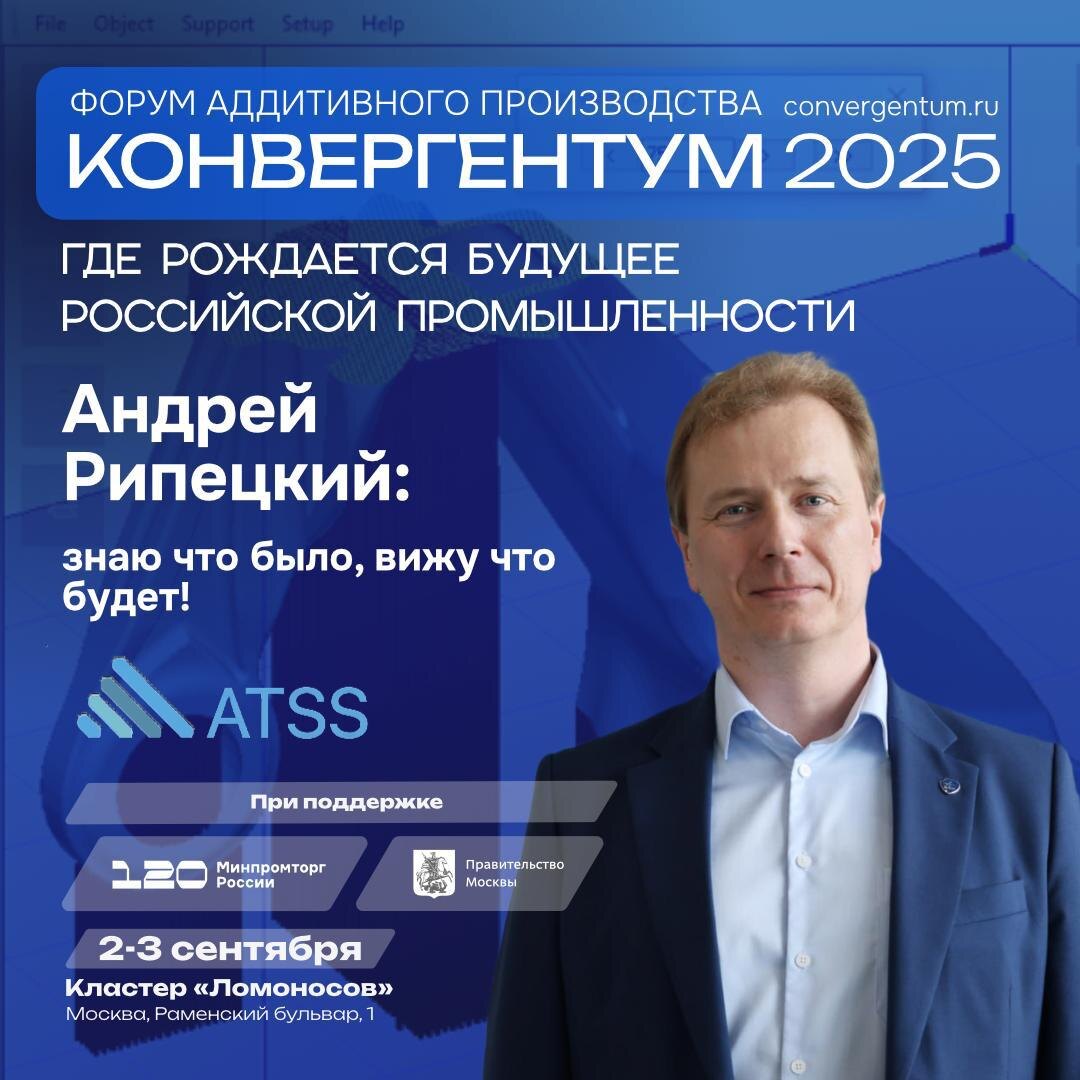 Андрей Рипецкий: знаю что было, вижу что будет! 👤 Андрей Рипецкий, генеральный директор ООО «Аддитивные технологии» (ATSS Group), выступит на форуме аддитивного производства «Конвергентум 2025» с докладом «Знаю, что было, вижу, что будет!» Андрей расскажет о контроле процесса, анализе данных и прогнозировании проблем в аддитивном производстве. И всё это уже возможно благодаря фирменному программному обеспечению его команды — «Глайсер». «Глайсер» активно применяется в различных аддитивных технологиях и используется ведущими производственными командами России. «3D-печать — это не волшебство, а точная наука. Ошибка в 3% на этапе подготовки (из-за человеческого фактора) оборачивается миллионными потерями. Но что, если машины научатся предупреждать нас о проблемах до их появления? Аддитивные технологии стремительно эволюционируют: от ручной настройки оборудования — к автономным “цифровым двойникам”. Наша миссия в ATSS — превратить данные в вашего главного инженера», — отмечает Андрей Ри