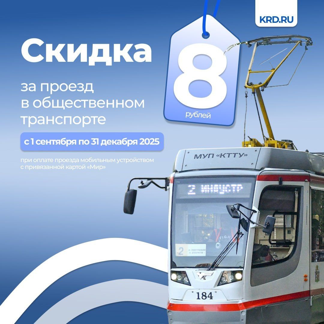 💳 В Краснодаре до конца года будет действовать скидка на проезд в общественном транспорте С 1 сентября по 31 декабря 2025 года стоимость проезда в общественном транспорте снизится на 8 рублей. Акцию запускает платёжная система «Мир». ❗️ Скидка будет действовать при оплате поездок в автобусах, трамваях и троллейбусах картой, загруженной в телефон. Об этом рассказали на пресс-конференции, которую провели в Южном Главном управлении Банка России. В ней принял участие министр экономики Краснодарского края Алексей Юртаев. С полными правилами предоставления скидки на проезд и перечнем маршрутов перевозчиков, участвующих в акции, можно ознакомиться на сайте 🔎 👍 ТК Краснодар | Подписаться