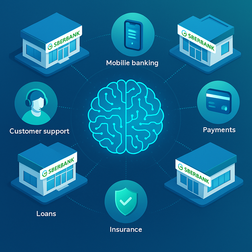Сбербанк к 2030 году трансформируется из традиционного банка в AI-First экосистему, где не менее 50% выручки будет приносить небанковский бизнес. В декабре 2023 года Сбербанк представил стратегию на 2024–2026 годы. Главные цели: По итогам 1 полугодия 2025 г. Сбербанк показал: Сбербанк сохраняет прогноз ROE > 22% и рост чистой прибыли в 2025 г.. Форвардная дивидендная доходность – около 12%. Итог: Сбербанк стоит на пороге глобальной трансформации: ставка на ИИ, расширение экосистемы и сохранение высокого уровня доходности позволят банку сохранить лидерство на российском рынке и усилить позиции в цифровом пространстве.