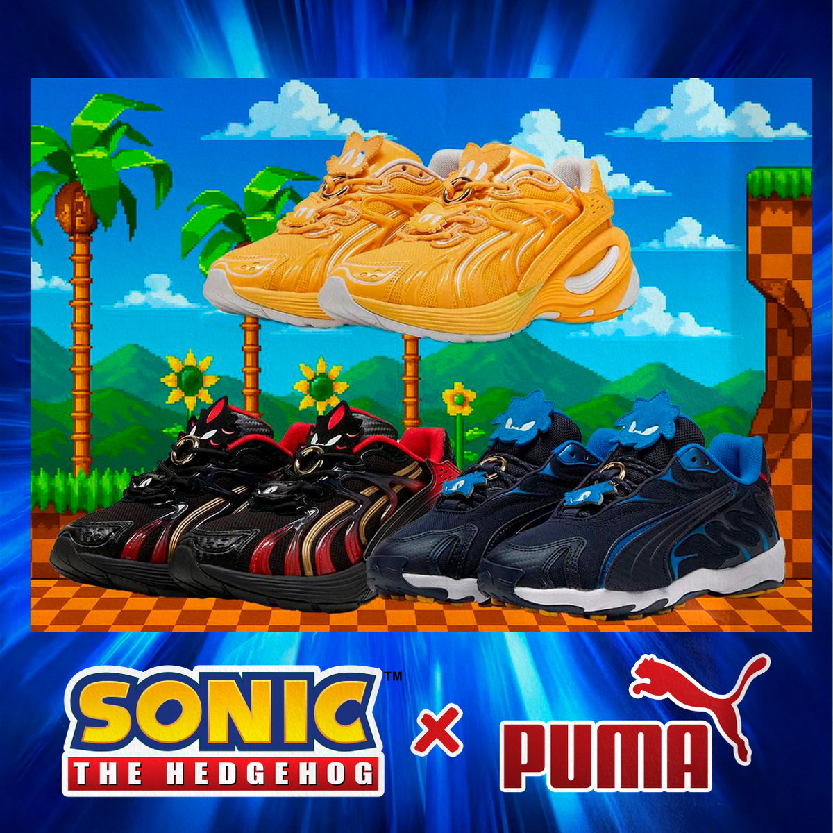 Sonic The Hedgehog коллабится с PUMA и готовит три новинки: Puma inhale в стиле Соника, Puma Inverse в стиле Тэйлза и Шэдоу.
