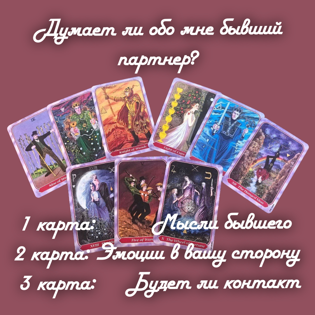 - Мысли бывшего (8 Кубков): Его ключевая мысль — уход. Он мысленно ушел от этой ситуации, отношениях, от того, что было. Он ищет чего-то большего, чего-то другого или просто эмоционально отстранился. Его мысли не о возврате к прошлому, а о движении вперед, пусть даже в одиночестве и с чувством некой тоски или неудовлетворенности. Он мысленно повернут к вам спиной.