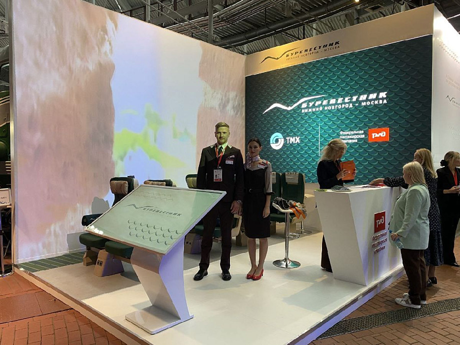 На выставке PRO//Движение.Экспо представлен сенсационный экспонат — макет салона нового российского скоростного поезда «Буревестник». Это первый взгляд на интерьер состава, который обещает совершить революцию в пассажирских перевозках. Новый поезд начнёт курсировать по направлению Москва – Нижний Новгород, и будет проходить через Владимир. Старт - 3 декабря 2025 года. Ключевая особенность проекта — двухэтажная компоновка вагонов, значительно увеличивающая вместимость. Как продемонстрировали на макете, пассажиров ждет беспрецедентный комфорт: индивидуальные розетки, включая современные разъемы USB и Type-C, а также регулируемые спинки кресел. При этом разработчики представили и эксклюзивные опции для требовательных клиентов. В улучшенной компоновке предусмотрены отдельные купе со спальными местами, что позволяет наслаждаться уединением даже в скоростном формате путешествия. Всего в составе будут курсировать до 15 вагонов различного класса: от сидячих до СВ и вагона-бистро. Облик поезда,