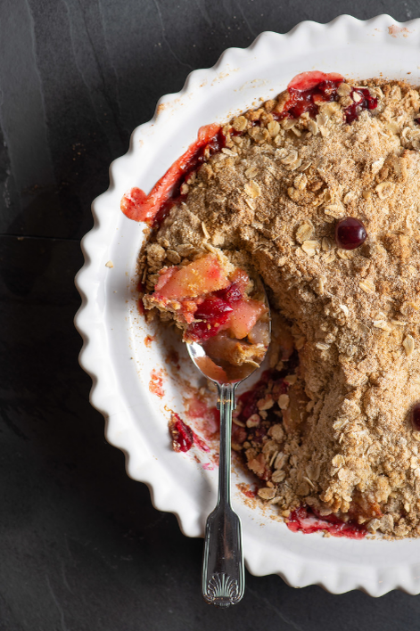 Минимум усилий, максимум аромата. Груши и клюква в этом рецепте образуют гармоничное сочетание сладости и лёгкой терпкости, а хрустящий овсяный верх завершает композицию. Подходит для будней и без лишнего пафоса — просто вкусно. Фруктовая основа: 5 груш (примерно 4 чашки), очищенных и нарезанных 1 ст. л. лимонного сока 1 ст. л. кукурузного крахмала 1 ч. л. корицы 1 ч. л. ванильного экстракта ¼ ч. л. соли 1 ч. л. молотого мускатного ореха 1 чашка клюквы (свежей или замороженной) Крошка (крамбл): ¾ чашки овсяной муки (можно смолоть хлопья) 1 чашка цельных овсяных хлопьев ¾ чашки светло-коричневого сахара 1 ч. л. корицы ¼ ч. л. соли 110 г веганского масла (можно без сои) Способ приготовления: 1. Разогрейте духовку до 175°C. 2. В глубокой миске смешайте груши, лимонный сок, крахмал, корицу, ваниль, соль, мускатный орех и клюкву. 3. Переложите фруктовую смесь в форму диаметром около 23 см. 4. В другой миске соедините овсяную муку, хлопья, сахар, оставшуюся корицу и соль. 5. Добавьте масло