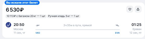 ✈️Москва - Ереван (Армения), прямой рейс за 6530 рублей