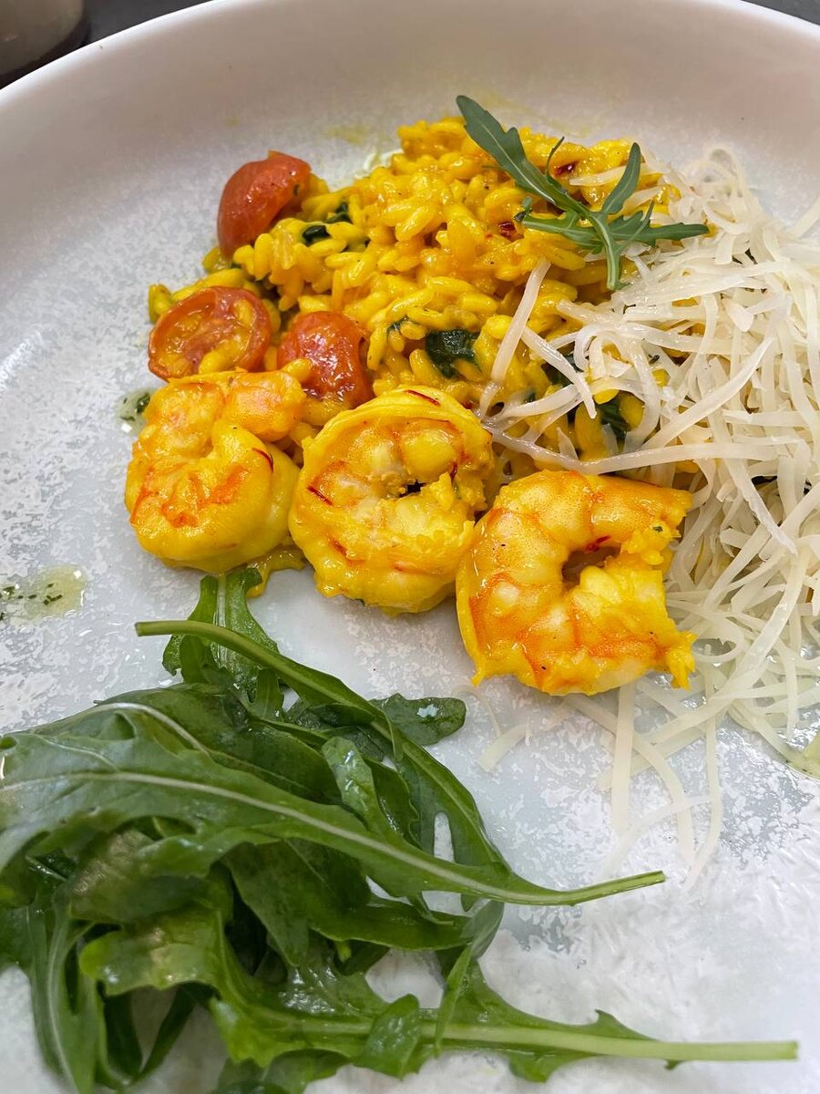 Ризотто с креветкой и шпинатом с шафраном и лимонным маслом 🧈