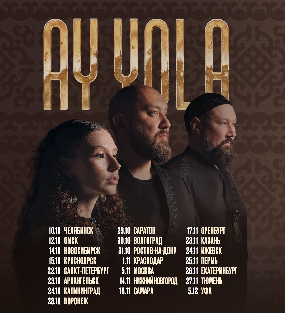 AY YOLA отправляется в первый масштабный тур по России с альбомом «Ural-Batyr». Как сообщил «Башинформу» музыкант группы, народный артист Башкортостана Ринат Рамазанов, большое путешествие по стране состоится с 10 октября по 5 декабря.