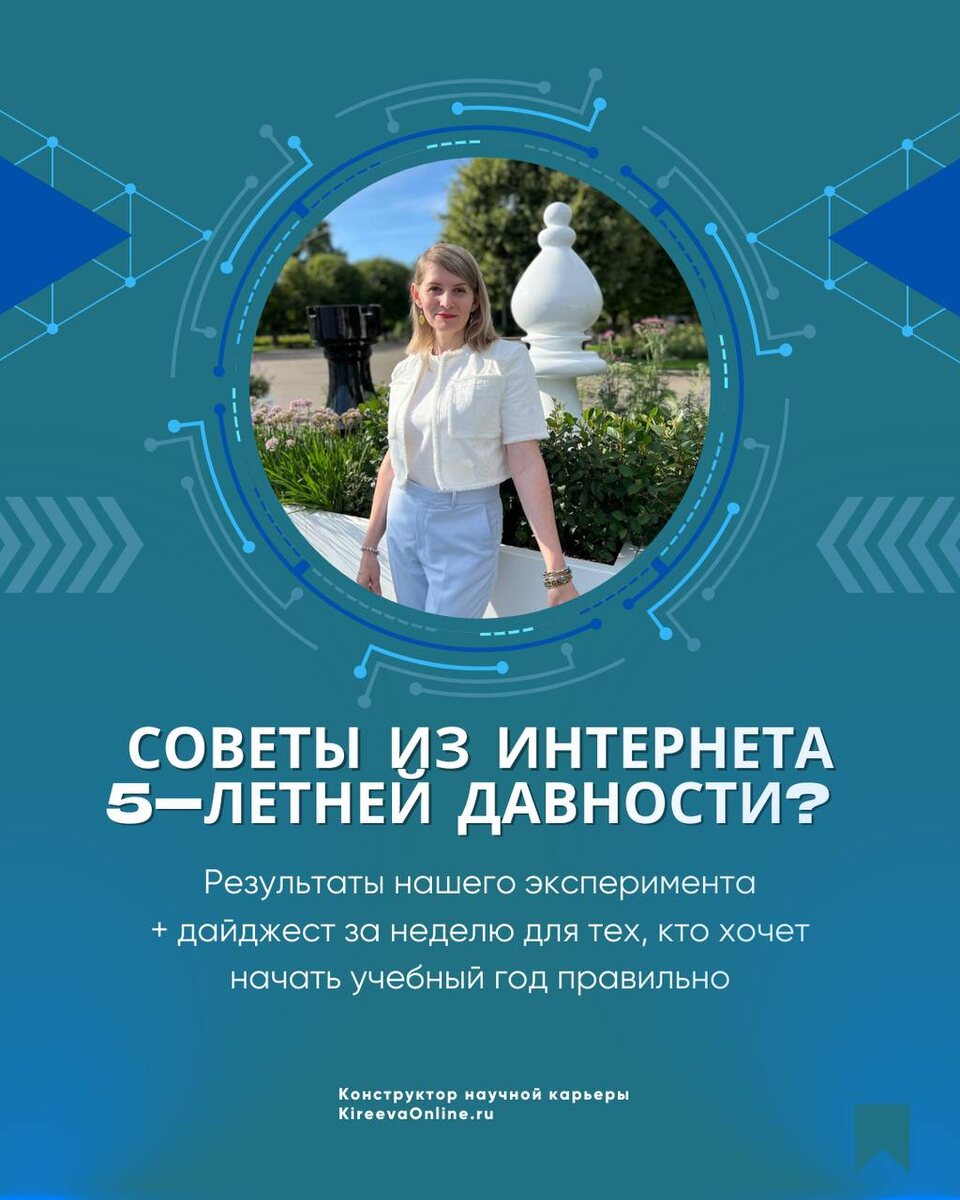 + дайджест за неделю для тех, кто хочет начать учебный год правильно Все, лето кончилось! Вы довольны тем, каким оно было? Я безусловно. Удалось и отпуск с семьей провести и активно поработать. На этой неделе главной темой сообщества была подготовка к новому учебному году, а точнее первым шагам, которые стоит сделать в сентябре. Говорили о том, что ждет тех, кто уже в аспирантуре или на соискательстве, а также, к чему надо готовиться тем, кто только-только поступил. Читайте и применяйте! 📝 Провели перекличку, на какой стадии находятся исследователи в нашем сообществе И вспомнили о том, что скоро кафедральный отчет, о котором знают не все диссертанты Читать… 📝 Что случится, если вы не начнёте писать диссертацию в сентябре Обсудили, как избежать большой ошибки Проверить… 📝 Это нужно сделать в сентябре, чтобы не краснеть на отчете перед кафедрой Поговорили о правильном распределении времени в условиях неопределенности Узнать… 📝 Почему первые месяцы в аспирантуре — самое важное время