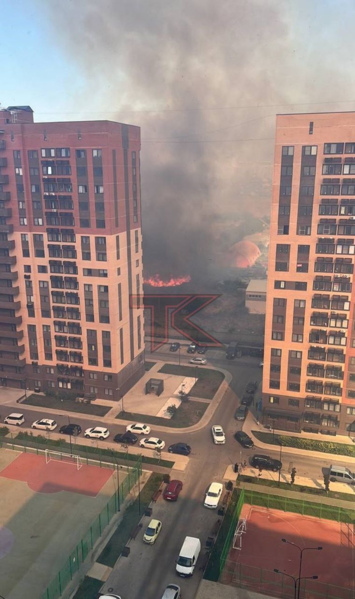 Очередной пожар. В Новознаменском горит поле возле ЖК «Смородина». Столб дыма поднимался над всем районом.