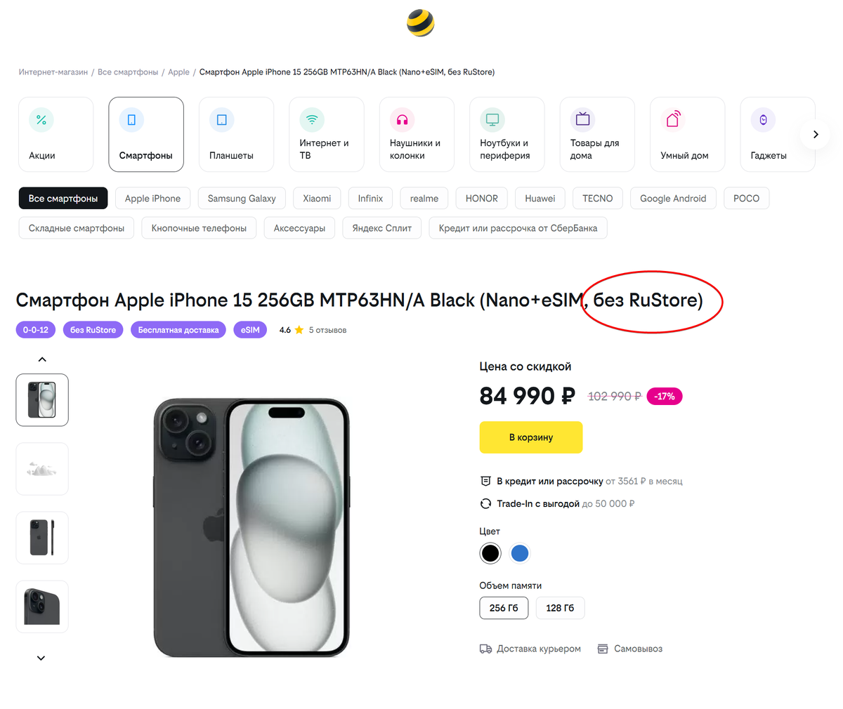 Тем не менее, закон принят. Министр подписал, депутаты рапортовали, а продавцы, видимо, поспешили показать, что iPhone — не виноват, он просто… без RuStore. И на ценниках, и на маркетплейсах — все честно предупреждают: вот, смартфон нормальный, но RuStore не установлен. Такая “пометка честности”, как будто фруктовый йогурт продают и честно пишут: “без молока и вкуса”, ну чтобы не обвинили.