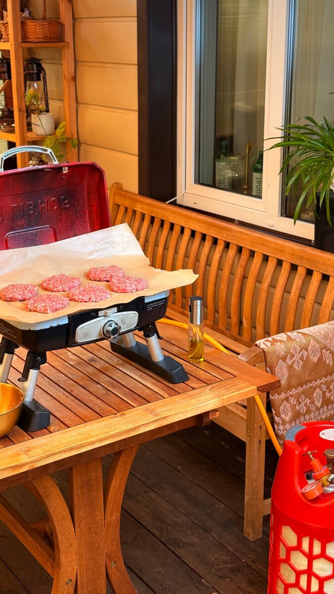 Обед готовлю сегодня я. Мои фирменные бургеры на гриле. Мммм 😋.
