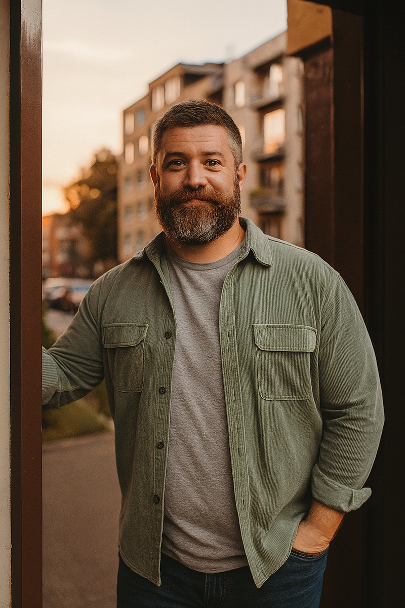 — «Настя, открой дверь, там Артур приехал!» Я нехотя пошла. Открываю дверь — и всё. В тот момент мир будто остановился. На пороге стоял мужчина. Высокий, 1,83, широкие плечи, борода. Не пафосном «бизнес в костюме», а настоящий брутальный мужчина в чёрной футболке и джинсах. От него пахло смесью бензина, одеколона и прохладного вечера. Улыбнулся: