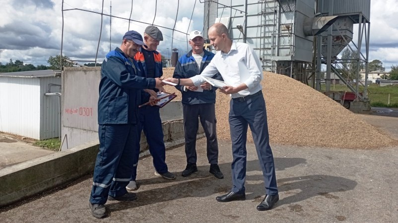 Профсоюзные организации продолжают чествовать передовиков жатвы-2025. В Костюковичском районе Благодарности Могилёвского областного объединения профсоюзов и денежных выплат удостоено звено операторов зерносушильной установки из коммунального сельскохозяйственного унитарного предприятия “Парижская Слобода” в составе Алексея ЧЕРНЫШЕВА, Станислава ТАРАТЫНКО и Алексея КОРОЛЕВА. Председатель Могилёвской областной организации Белорусского профсоюза работников ЖКХ и сферы обслуживания Павел ЖУЙКОВ поблагодарил хлеборобов за труд, призвав их быть примером в соблюдении трудовой и производственной дисциплины, внимательно относиться к вопросам охраны труда.