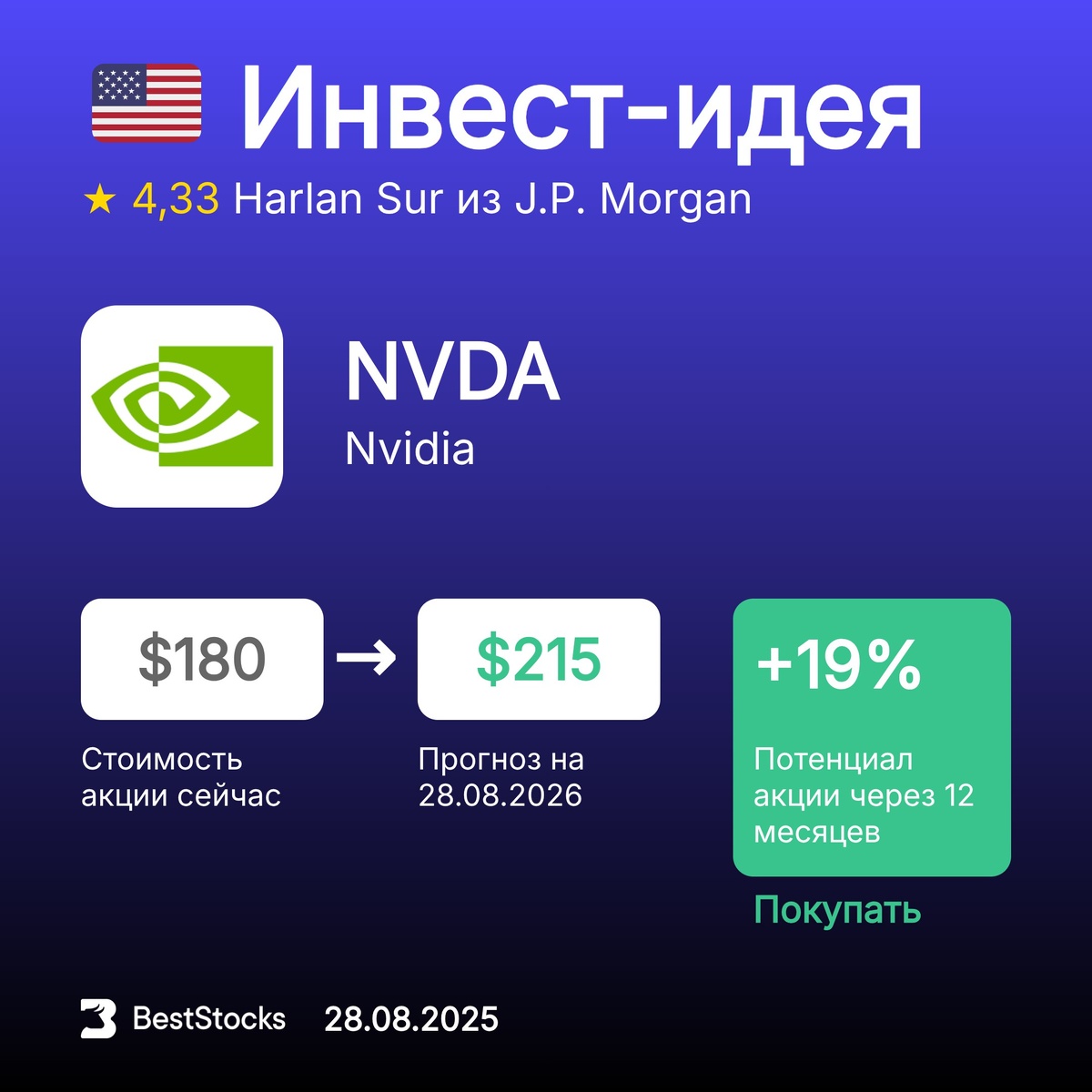 πΊπΈ ΠΠ½Π²Π΅ΡΡ-ΠΈΠ΄Π΅Ρ ΠΏΠΎ Π°ΠΊΡΠΈΠΈ Nvidia Π’ΠΈΠΊΠ΅Ρ: NVDA ΠΡΠΎΠ³Π½ΠΎΠ·Π½Π°Ρ ΡΠ΅Π½Π°: $215 (+19%) Π Π΅ΠΊΠΎΠΌΠ΅Π½Π΄Π°ΡΠΈΡ: ΠΠΎΠΊΡΠΏΠ°ΡΡ InvestRank Π°ΠΊΡΠΈΠΈ: 9 ΠΈΠ· 10 ΠΡΠΎΠ³Π½ΠΎΠ· ΡΠ΄Π΅Π»Π°Π½: 28.08.2025 ΠΡΠΎΠ³Π½ΠΎΠ· Π΄ΠΎ: 28.08.2026 ΠΠ½Π²Π΅ΡΡ-ΠΊΠΎΠΌΠΏΠ°Π½ΠΈΡ: J.P. Morgan ΠΠ½Π°Π»ΠΈΡΠΈΠΊ: Harlan Sur ΠΡΡ ΡΠ΅ΠΊΠΎΠΌΠ΅Π½Π΄Π°ΡΠΈΠΈ Π½Π° ΡΠ΅Π³ΠΎΠ΄Π½Ρ β β’β’β’β’β’ β‘οΈ ΠΠΎΠ²ΡΠΉ ΡΡΠ½ΠΊΡΠΈΠΎΠ½Π°Π» Π½Π° ΡΠ°ΠΉΡΠ΅ β π·πΊ ΠΠ°ΠΊΠΈΠ΅ ΡΡΡΡΠΊΠΈΠ΅ Π°ΠΊΡΠΈΠΈ Π² ΡΡΠ΅Π½Π΄Π΅. Π£Π·Π½Π°ΠΉΡΠ΅, ΠΊΠ°ΠΊΠΈΠ΅ Π±ΡΠΌΠ°Π³ΠΈ ΠΈΠ· Π ΠΎΡΡΠΈΠΈ ΠΏΠΎΠ»ΡΡΠΈΠ»ΠΈ Π±ΠΎΠ»ΡΡΠ΅ Π²ΡΠ΅Π³ΠΎ ΡΠ΅ΠΊΠΎΠΌΠ΅Π½Π΄Π°ΡΠΈΠΉ Π·Π° ΠΏΠΎΡΠ»Π΅Π΄Π½ΡΡ Π½Π΅Π΄Π΅Π»Ρ.