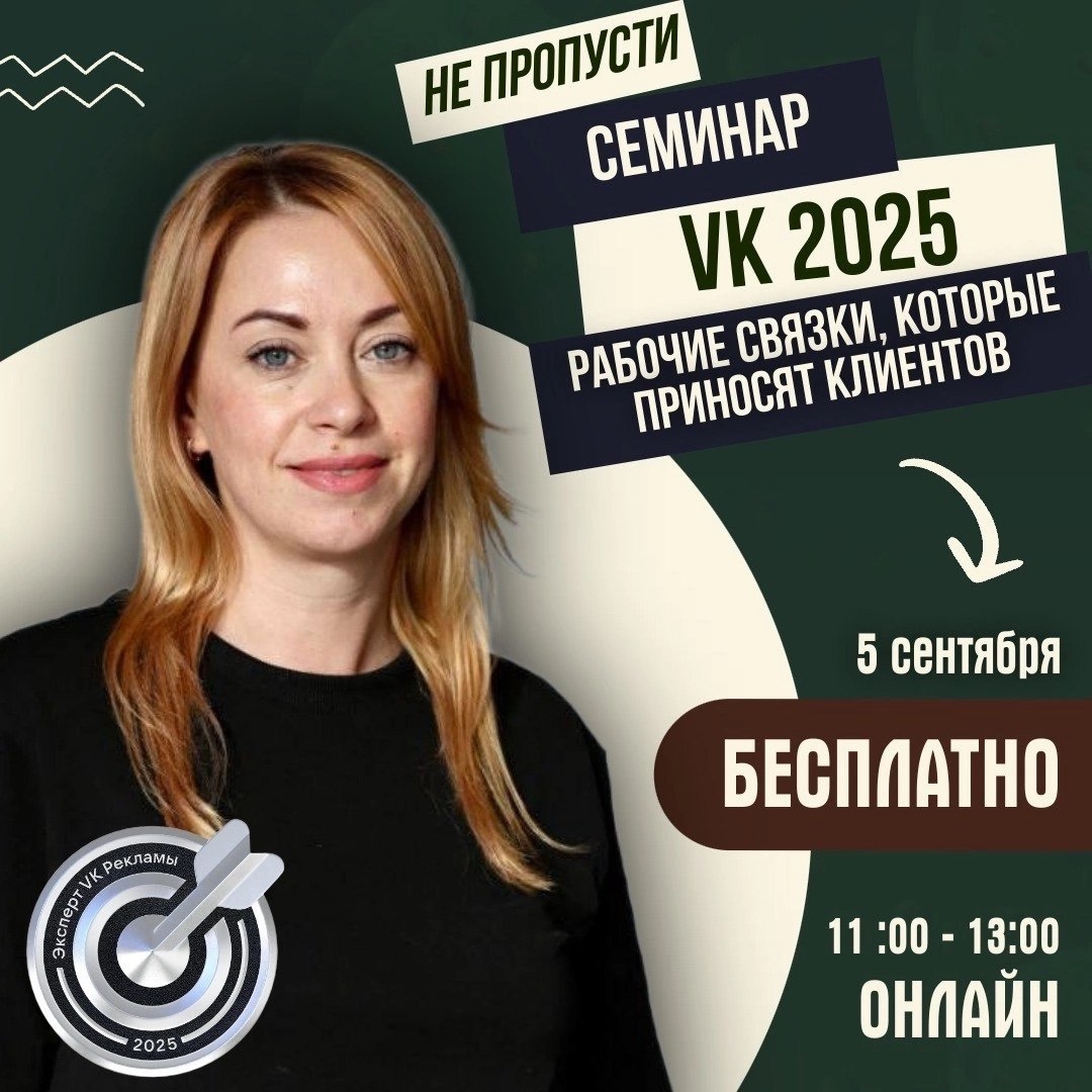 Π²Π°ΡΡ Π½ΠΈΠ·ΠΊΠΈΠ΅, ΠΊΠ°ΠΊ ΠΏΡΠΎΠ΄Π²ΠΈΠ³Π°ΡΡ Π±ΠΈΠ·Π½Π΅Ρ Π² ΡΠ°ΠΊΠΎΠΉ ΡΠΈΡΡΠ°ΡΠΈΠΈ? π£ΠΡΠΈΠ³Π»Π°ΡΠ°Π΅ΠΌ Π½Π° ΠΠΠΠΠΠ ΡΠ΅ΠΌΠΈΠ½Π°Ρ "VK 2025: ΡΠ°Π±ΠΎΡΠΈΠ΅ ΡΠ²ΡΠ·ΠΊΠΈ, ΠΊΠΎΡΠΎΡΡΠ΅ ΠΏΡΠΈΠ½ΠΎΡΡΡ ΠΊΠ»ΠΈΠ΅Π½ΡΠΎΠ²" , Π³Π΄Π΅ Π½Π°ΡΡΡ, ΠΊΠ°ΠΊ ΠΏΠΎΠ»ΡΡΠ°ΡΡ ΠΊΠ»ΠΈΠ΅Π½ΡΠΎΠ² ΠΈΠ· ΠΠΠΎΠ½ΡΠ°ΠΊΡΠ΅ ΠΌΠ½ΠΎΠ³ΠΎ ΠΈ Π½Π° ΡΠ΅Π³ΡΠ»ΡΡΠ½ΠΎΠΉ ΠΎΡΠ½ΠΎΠ²Π΅. π©βπΌΠ‘ΠΏΠΈΠΊΠ΅Ρ: ΠΠ°Π΄Π΅ΠΆΠ΄Π° ΠΠΎΠ·ΡΡΠ΅Π²Π° - ΠΌΠ°ΡΠΊΠ΅ΡΠΎΠ»ΠΎΠ³ ΠΈ ΡΡΠΊΠΎΠ²ΠΎΠ΄ΠΈΡΠ΅Π»Ρ ΡΠΎΠ±ΡΡΠ²Π΅Π½Π½ΠΎΠ³ΠΎ ΡΠ΅ΠΊΠ»Π°ΠΌΠ½ΠΎΠ³ΠΎ Π°Π³Π΅Π½ΡΡΡΠ²Π°. β°05 ΡΠ΅Π½ΡΡΠ±ΡΡ 11:00 - 13:00 π ΠΠΠΠΠΠ π₯Π£ΡΠ°ΡΡΠΈΠ΅ ΠΠΠ‘ΠΠΠΠ’ΠΠΠ! ΠΠ»Ρ Π²ΡΠ΅Ρ