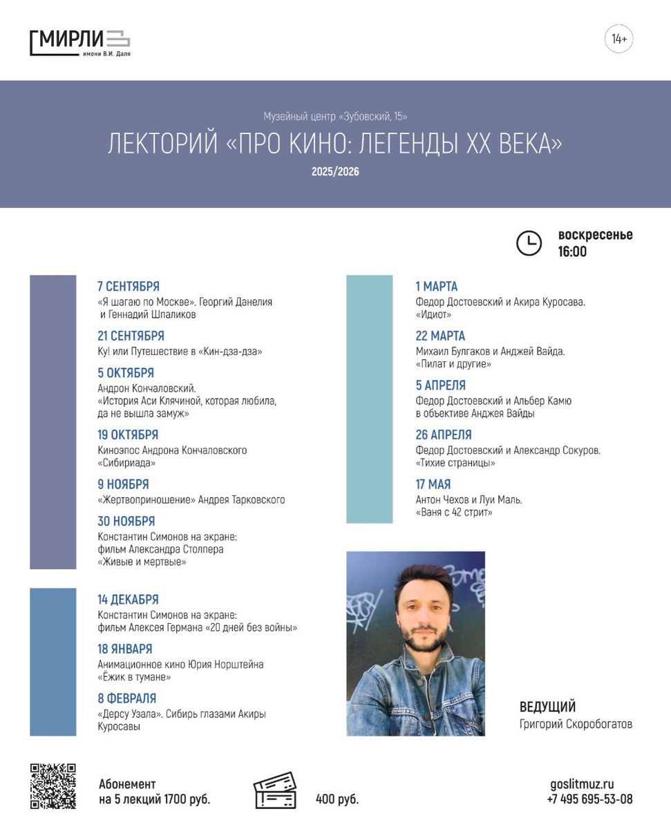 📽Друзья, в новом сезоне возобновляет работу киноклуб на Зубовском. Ждем вас на новые программы!