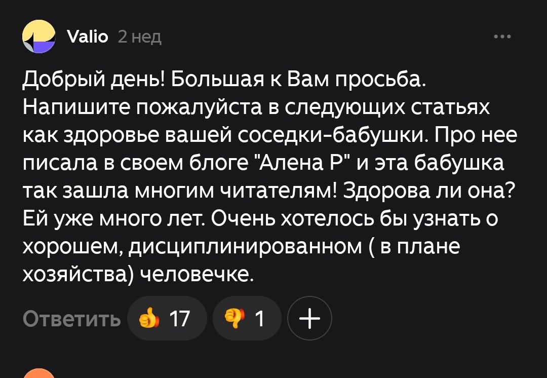 Бабушка-соседка в порядке, в силу возраста и возможностей ведёт хозяйство. Подкармливает Софию то конфетами, то какой-нибудь домашней выпечкой, оладушками или пирожками. 😃🍪 🥧🍬