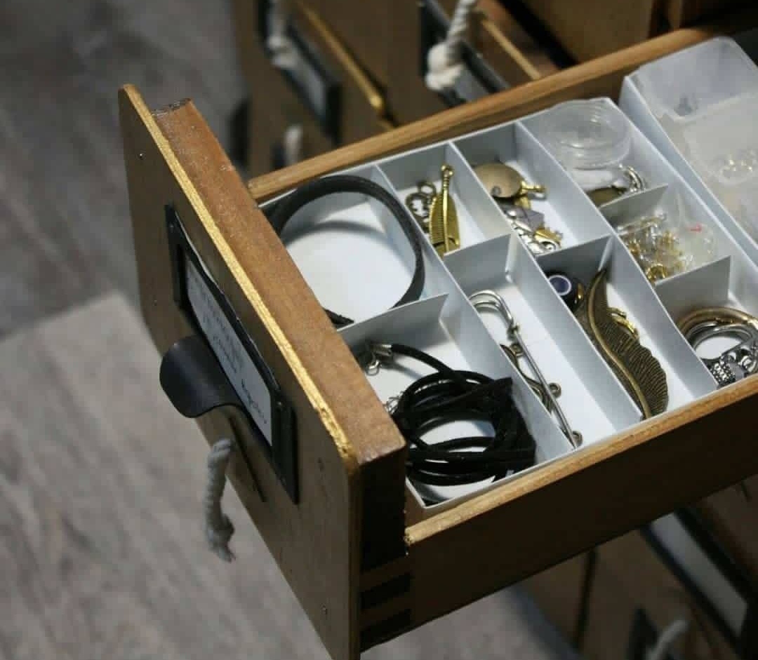 Мастера и мастерицы, как вы храните все полезные мелочи? Я очень не люблю пластиковые контейнеры, однажды меня озарило — старая картотека! Удобная, много ящиков, длинные и не сильно глубокие (не забудешь, что на дне 😂). Нашла, отремонтировала, наполнила. А для порядка сама сделала органайзеры-разделители. Это простые коробочки из плотной бумаги с приклееными бортиками. Использовала плотную бумагу для пастели нежного оттенка 🙃 Альбом, клей карандаш и пара часов времени. Эти органайзеры точно встали в ящики, могут выниматься. За несколько лет использования ни разу не разочаровалась. Как временный вариант, пока вы копите на органайзеры вашей мечты — тоже подходит.