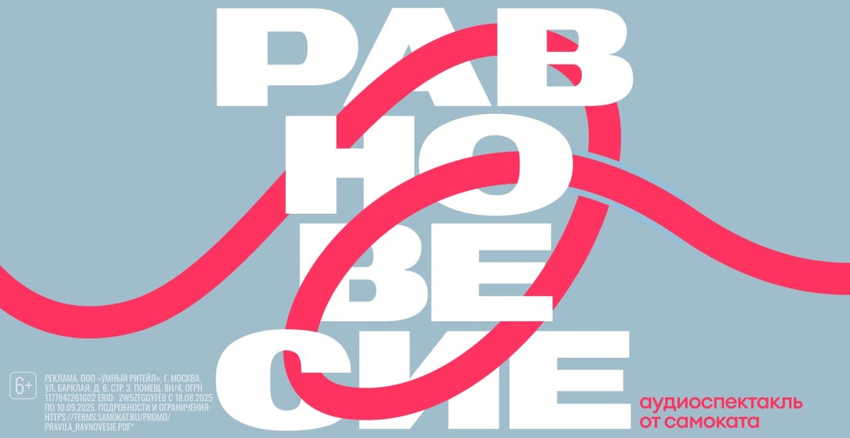 Превратите обычный день в маленькое приключение. Не нужно уезжать далеко, чтобы почувствовать себя путешественником — достаточно выйти в Приморский парк или даже остаться дома, включив воображение. Запустите аудиопрогулку «Равновесие» от Самоката и привычный город заиграет новыми красками. Возьмите телефон, наушники и отправляйтесь по готовому маршруту. На прогулке вы познакомитесь с героями, пофантазируете вместе на лесных тропинках и потренируете искусство слышать мир вокруг. А ещё погрузитесь в детские воспоминания с помощью запахов, приятного эмбиента и историй сотрудников и партнёров Самоката. В финале — разгадаете тайну бесконечного лета и отдохнёте на деревянной набережной. Специально для вас — скидка 15% по промокоду РАВНОВЕСИЕ на на товары бренда Самокат при заказе от 700 рублей. Успейте использовать до 10 сентября! Никаких правил, только ваше настроение. Начните прогулку в любой момент на удобной платформе: · Звук · Яндекс Музыка · И другие площадки
