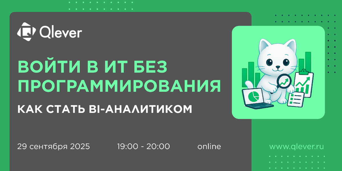 Хотите сменить сферу деятельности и войти в IT, но боитесь программирования? У нас есть решение! Приглашаем вас на бесплатный вебинар, где мы расскажем, как освоить новую профессию в IT без знаний кода или программирования. Мы поможем погрузиться в мир бизнес и дата-аналитики минуя длинные полугодовые теоретические срезы знаний, которые потом никогда не пригодятся. 👉 РЕГИСТРАЦИЯ Зарегистрируйтесь на вебинар прямо сейчас и получите ценные знания от практиков Qlever. Узнайте, как получить новую престижную профессию и увеличить свой доход. 👉 Начните свой путь в IT с Qlever!