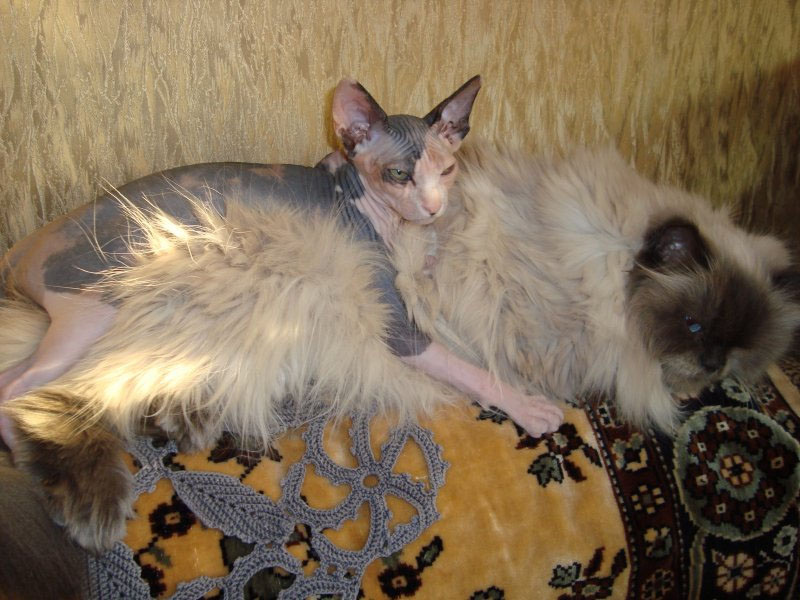 На момент этих событий в моде были очень популярны две породы кошек: персидская и сфинкс, то есть супердлинношерстная и почти под корень лысая. Это было время контрастов и противоречий, которое выражалось даже в предпочтениях людей по отношению ко внешнему виду питомцев. Та моя знакомая заводчица как раз держала двух котов и двух кошек означенных выше пород. Именно для разведения и продажи котят. Не спешите кидаться тапками: это был человек с ветобразованием, на конвейер она животных не ставила. Все паспорта, родословные, контроль здоровья, хорошая кормежка – все это у кошек было, плюс жила она в четырехкомнатной квартире, так что одна пара кошек находилась в одной комнате, когда это было нужно, то есть на период вязки, а вторая – в другой. Сама она занимала всего одну комнату в доме, еще одна была отдана кошкам (то есть самкам и их котятам), и когда кошкам нужен был покой (а это большая часть года), коты жили в своих комнатах поодиночке. Иначе было никак, ведь никто из ее животных н