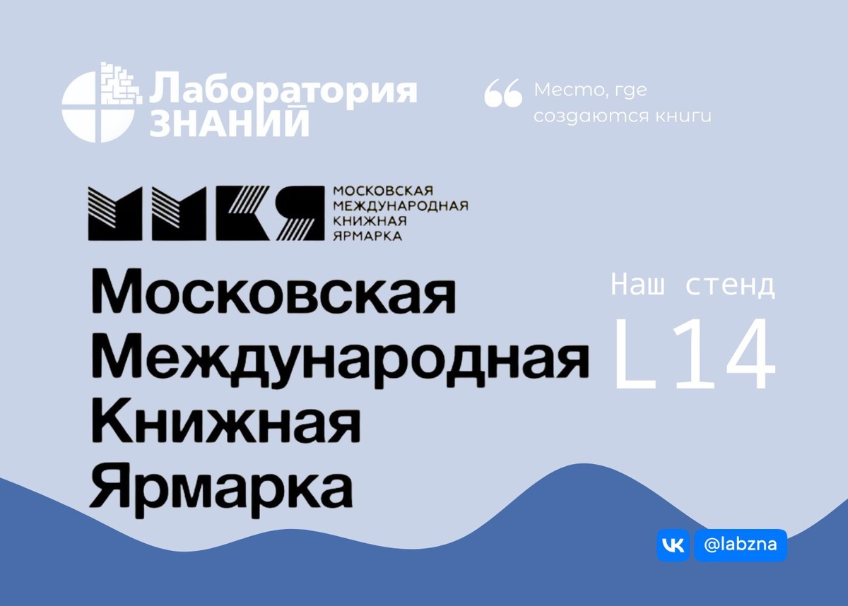 Издательство "Лаборатория знаний" (VK) 38-я Московская международная книжная ярмарка состоится с 3 по 7 сентября 2025 года на ВДНХ (павильон № 57, проспект Мира, 119), напротив площади Промышленности. Параллельно пройдёт Московская международная детская книжная ярмарка. Мы рады сообщить, что издательство «Лаборатория знаний» примет участие в этом значимом событии книжного мира. Будем рады видеть вас на стенде издательства. Приходите, чтобы познакомиться, обсудить, вдохновиться — и, конечно, приобрести новинки, которые мы давно готовили именно для вас. Вас ждут новейшие учебные и научно‑популярные издания — возможность первыми познакомиться с последними нашими релизами и приобрести их на месте, а также прямое общение с представителями издательства — ответы на ваши запросы, обсуждение методик, тематик и будущих проектов. В рамках 38-ой Московской международной книжной ярмарки издательство будет представлено на стенде L14. Нас легко найти на втором этаже рядом с зоной... Перейти на ор