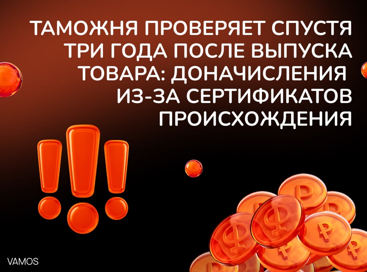 ⚠️ За последние месяцы постконтроль резко усилили: инспекторы достают поставки за 3 года после выпуска и пересчитывают пошлины. В фокусе - происхождение товара ❌Любые несостыковки в сертификатах (подделка, ошибки, несоответствия с Декларацией на Товары) = происхождение не подтверждено. Неподтверждение происхождения влечет доначисление пошлин. По ответным мерам РФ пошлина нередко вырастает до 25–40% (ПП РФ № 788/2018; позиция Минфин РФ, письмо от 24.10.2024) Почему спрашивают не только импортёра, но и покупателя? ТК ЕАЭС допускает солидарную обязанность платить пошлину у участников схемы и у приобретателя, если он знал/должен был знать о незаконности ввоза (п. 2 ст. 56). Пленум ВС № 49 (26.11.2019): одного плохого контрагента мало - таможня доказывает, что покупатель не проявил осмотрительность. На практике именно покупатель показывает, что осмотрительность была Как идёт постконтроль и почему важны сроки Проверять можно в течение 3 лет после выпуска. Ваш главный шаг - официальный запрос