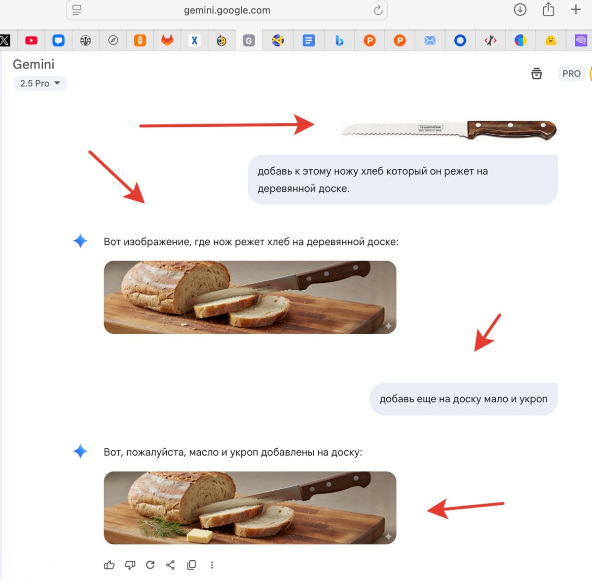 Вот так работает новая ИИ от Google по редактированию изображений. Кажется она называете Banana :) ... Я кинул картинку ножика и дальше можно фантазировать сколько угодно, работая с изображениями, меняя их шаг за шагом... У меня подписка Pro, лимитов еще не встречал. Для иллюстраторов просто находка, как по мне. Подписка стоит 3к в год. Брать можно на ggsel на ваш риск. Русский ИТ бизнес