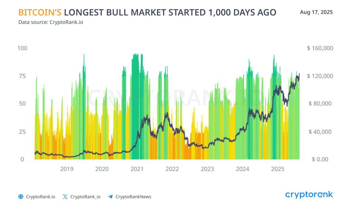 🚀💰 Can you believe it? 1,000 days ago, on Nov 22, 2022, Bitcoin was chilling at a low of $15,749. Fast forward to now and it’s been on a steady climb! 📈 Since Jan 2023, the Global Fear and Greed Index has mostly stayed in the green zone—talk about positive vibes! 🌟 This could be the longest bull market in Bitcoin history. Buckle up! #Bitcoin #BullMarket