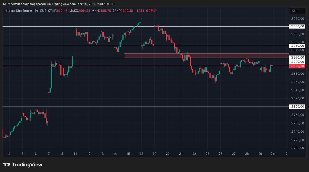 📝 Как закрывается рынок и что будет дальше? 👉 Открылся сегодня индекс с большим гэпом вниз, так как на вечершней, вечерней торговой сессии его сильно пролили на новостях. Открывшись, по классике рынок поехал выше, в сторону закрытия гэпа, который он до сих пор, до конца не закрыл. Смотря на дневной график виднеется ОЧЕНЬ слабое, но лонговое закрытие, а значит исходя из него можно было бы предположить, что далее будет рост к 2920. НО есть очень много нюансов. ❗️ Обратите внимание на мелкие таймфремы сегодняшнего движения. В основном падение, а рост только вертикальный. ПРИЧЕМ рынок закрылся СЛАБО лонгово, при условии того, что Лукойл стрелял вверх на почти 6%! Газпром на почти 3%! Они вместе составляют 30% в индексе и даже при этом условии получилось такое слабое закрытие. Поэтому тут прогнозировать какой то краткосрочный рост бы не стал. Очень уж слабо все себя чувствует. ✅ Поэтому локально думаю можем подрасти, в сторону закрытия гэпа 2910 - 2920, а от туда скорее всего вновь в п