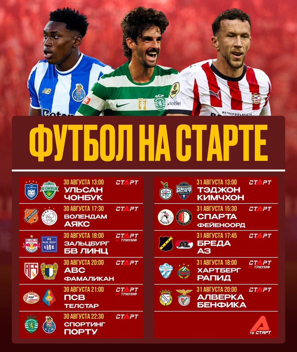😉 Выходные надо провести с футболом, пока все не разъехались в сборные! Нас ожидает сразу несколько топовых вывесок! Гранды корейского футбола сойдутся завтра в 13:00, а лидеры Примейры — в 22:30 🕥 Про остальные матчи тоже забывать не стоит. «Бенфика», к примеру, зарубится с командой вингера «Реала» Винисиуса 🔥 В общем, интриг очень и очень много. Все трансляции найдете на TVSTART.RU 🖥️ 🛒 Наше приложение в Google Play 💙 Наше приложение в RuStore 🛒 Наше приложение в App Store