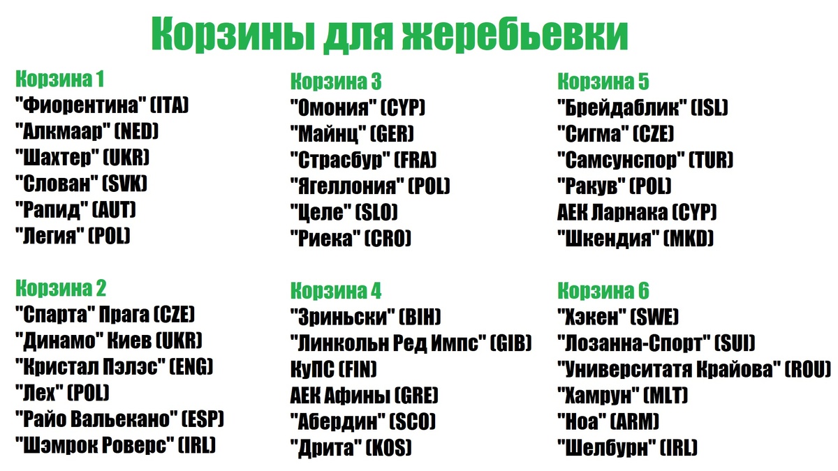 Состоялась жеребьёвка Лиги Конференций. Напомню, кто вошёл в сезон: Каждой команде досталось по 6 соперников: На вашем экране представлены команды и их оппоненты. Английский Кристал Пэлас сыграет: Динамо Киев получило следующих оппонентов: Фиорентине достались: Шахтёр сыграет с … Первый тур Лиги Конференций запланирован на 2 октября. Ставьте класс, закидывайте донаты по ссылкам внизу. Услышимся на «спортивном».
