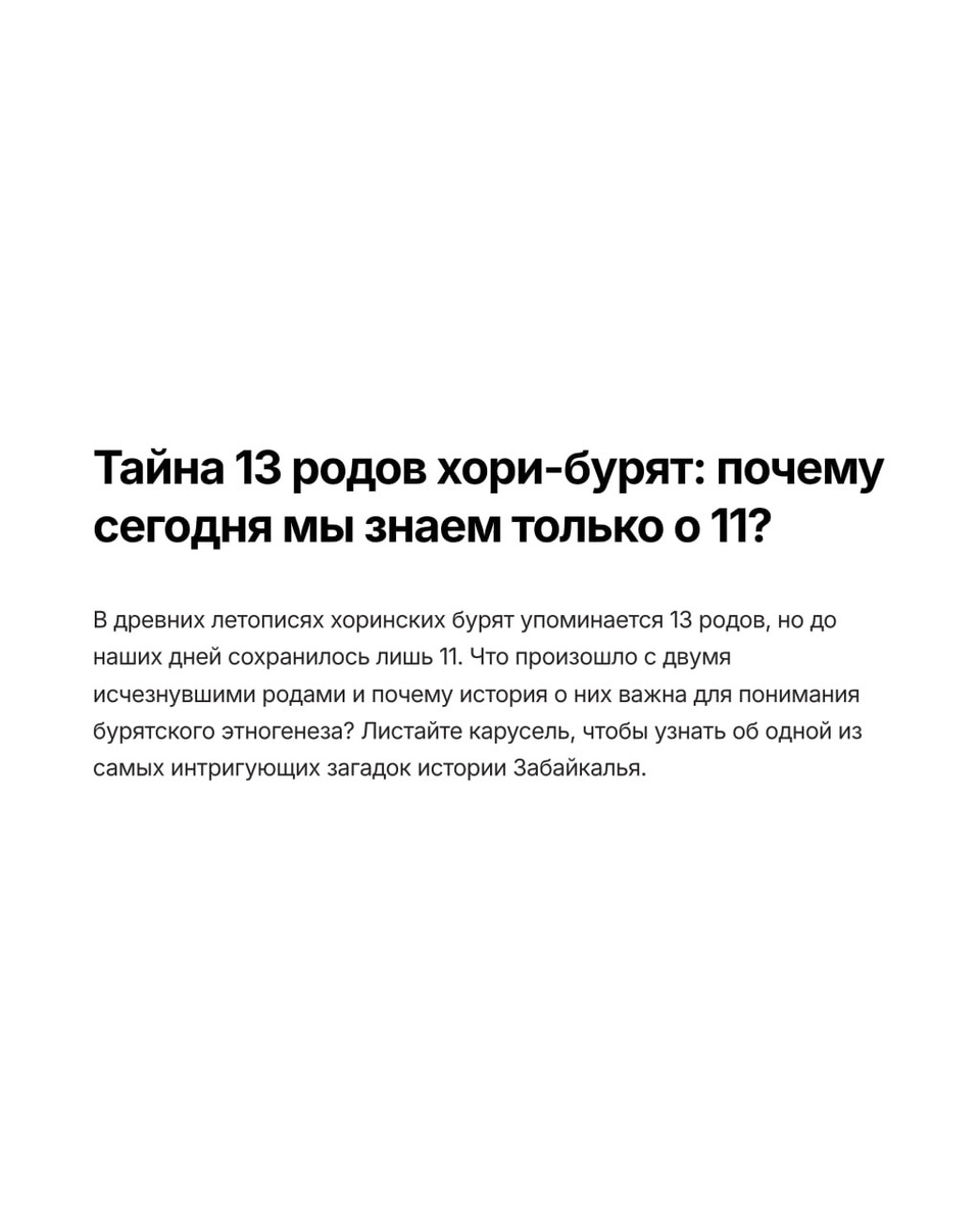 Хори имели 13 родов, а не 11 В старых летописях и генеалогиях говорится, что у хоринских бурят изначально было 13 родов. Сегодня известны только 11. Два рода исчезли во время миграций и ассимиляций. Род хайтал и сэгэнут Ещё больше интересного контента ждут тебя. 👉 Подписывайся: https://dzen.ru/id/670c7fe545d6d72caa724e37