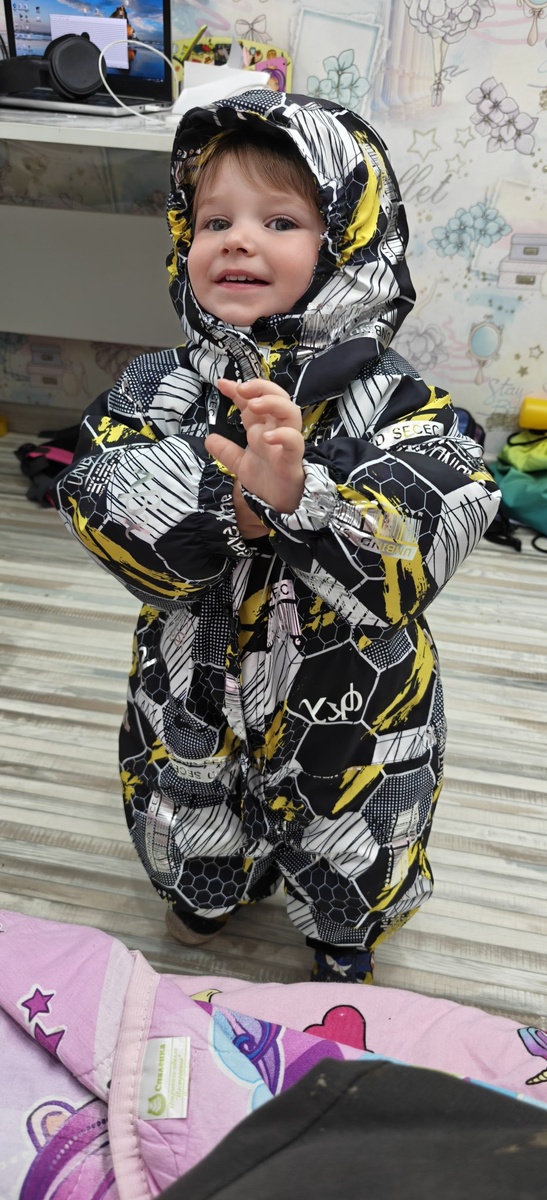 Купили Марку костюм на осень-весну.) Деловой такой, как космонавт в нём. 😆Это размер 98-104. А у Марка сейчас 86-92 размер.) Поэтому он ещё слегка большеват. 😉😁