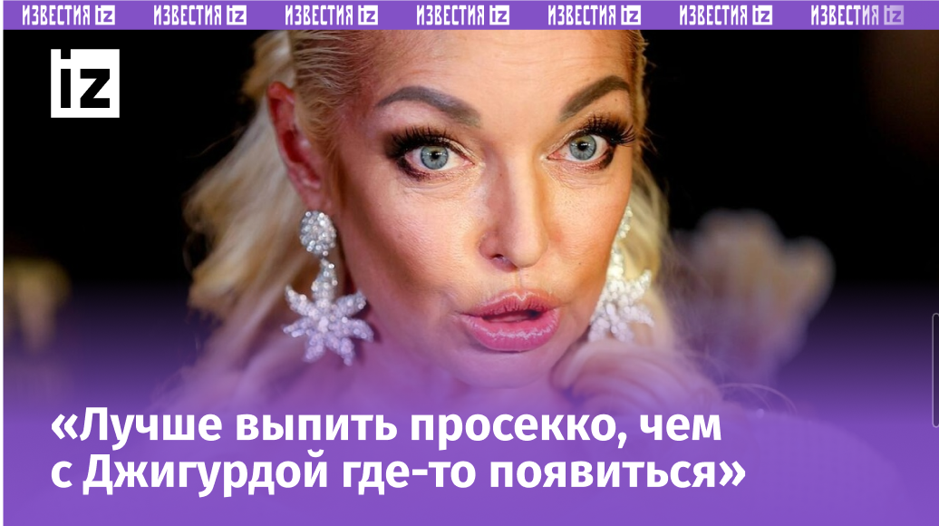 «Это человек, который всегда какой-то трэш, который всегда устраивает грязь, и потом ты отмываешься от этого всего, понимаешь? А ты говоришь про просекко. Так лучше выпить просекко, чем с Джигурдой где-то появиться. Да (не общаюсь. — Прим. ред.) потому что это человек, который на моем имени, хотя у него вроде свое достаточно известное, всегда делал подставы. На всех моих мероприятиях всегда что-то такое придумает», — поделилась Волочкова.